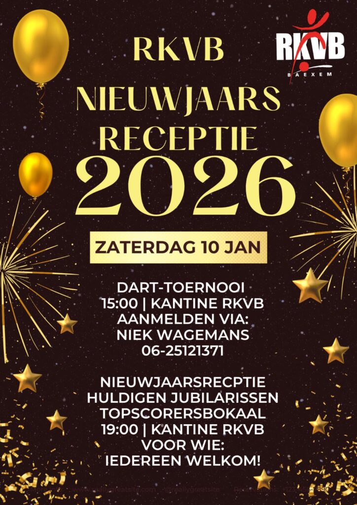 Op zaterdag 10 januari zal de traditionele nieuwjaarsborrel plaatsvinden in de kantine van RKVB vanaf 19.00 uur voor iedereen die RKVB een warm hart toedraagt.